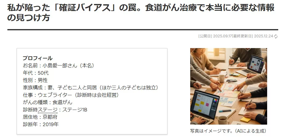 掲載記事: 私が陥った「確証バイアス」の罠。食道がん治療で本当に必要な情報の見つけ方